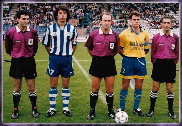 Fotos cedidas por D. M. Torrontegui. Durante su estancia en el Málaga Club de Fútbol. Con Luis Enrique en uno de los muchos partidos disputados por su club